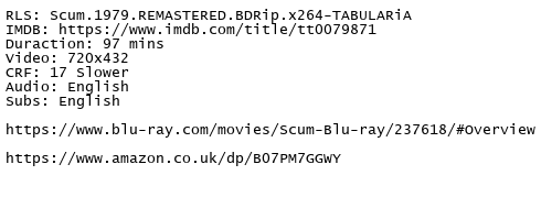 Release Name : Scum.1979.REMASTERED.BDRip.x264-TABULARiA