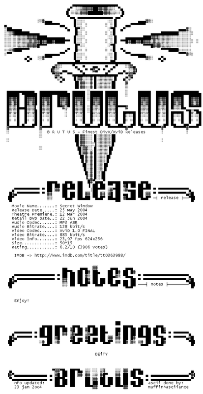 Release Name : Secret.Window.2004.DVDRiP.XviD-BRUTUS