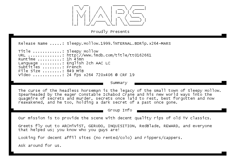 Release Name : Sleepy.Hollow.1999.iNTERNAL.BDRip.x264-MARS
