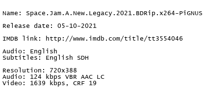 - Space Jam A New Legacy 2021 BDRip DD5.1 x264-playSD