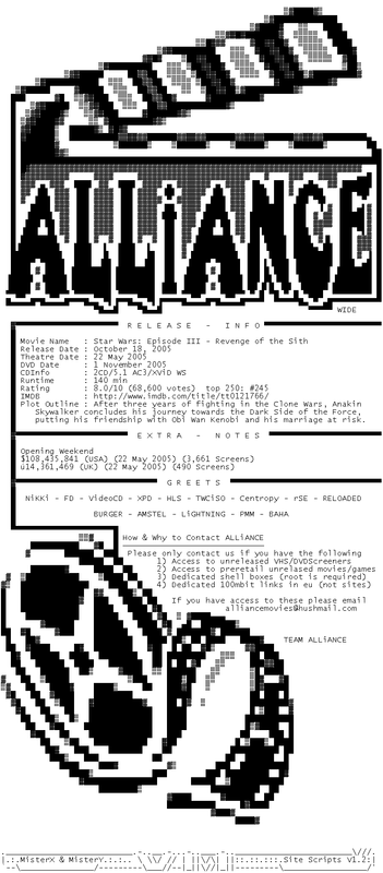 Release Name : Star.Wars.Episode.3.Revenge.of.the.Sith.DVDRip.AC3.XViD-ALLiANCE