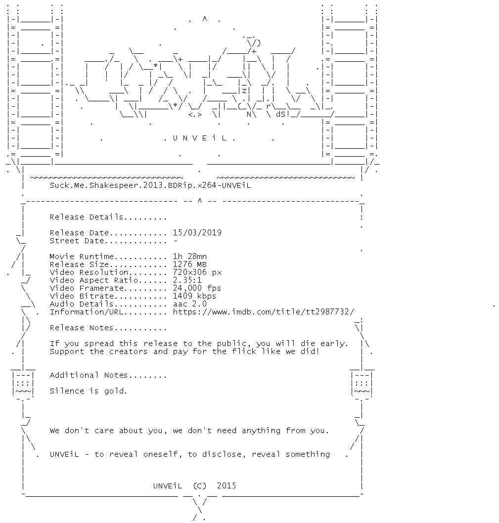 Release Name : Suck.Me.Shakespeer.2013.BDRip.x264-UNVEiL