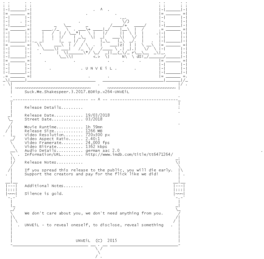 Release Name : Suck.Me.Shakespeer.3.2017.BDRip.x264-UNVEiL