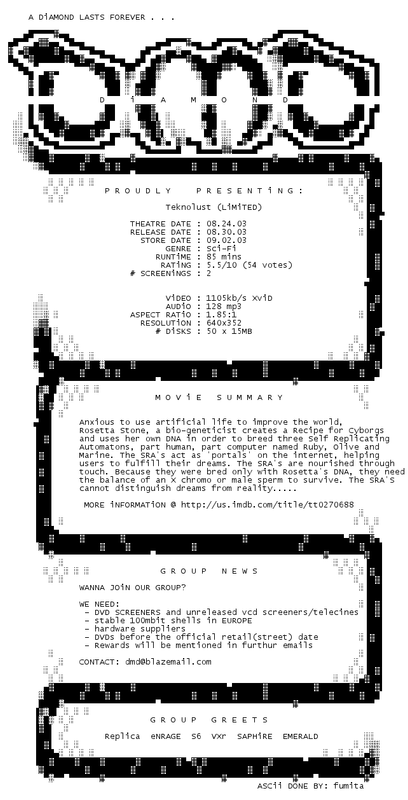 Release Name : Teknolust.2002.LiMiTED.DVDRip.XviD-DiAMOND