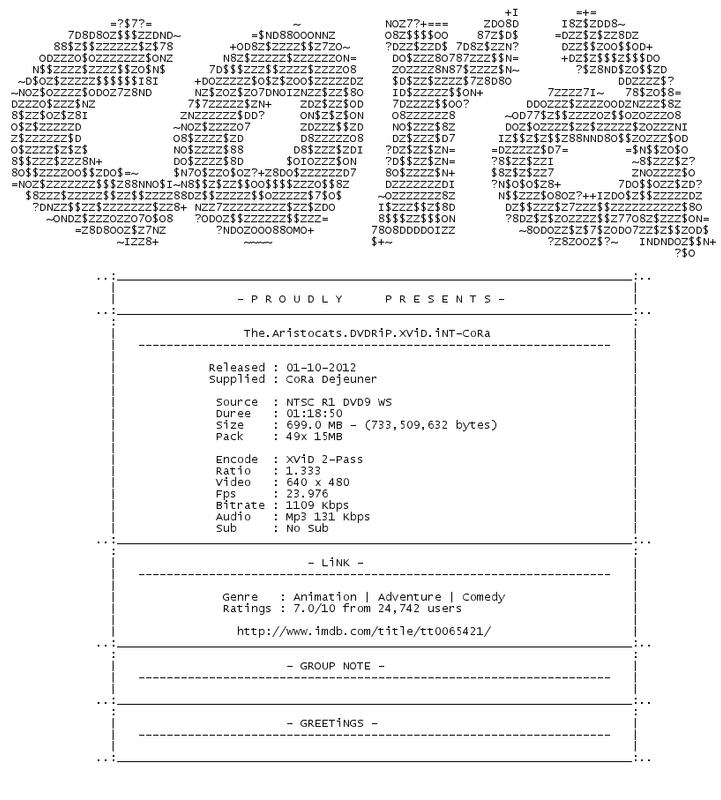 Release Name : The.Aristocats.1970.DVDRiP.XViD.iNT-CoRa