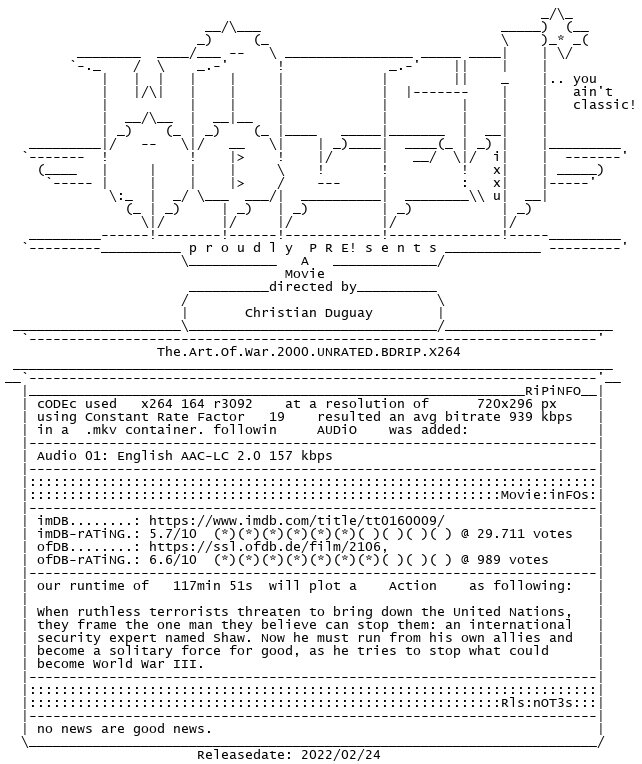 https://multiup.org/download/5bbe7ba1fe92dde3e6d4bf008c8c676f/The.Art.Of.War.2000.UNRATED.BDRIP.X264-WATCHABLE.rar