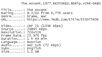 Release Name : The.Ascent.1977.RESTORED.BDRip.x264-ORBS