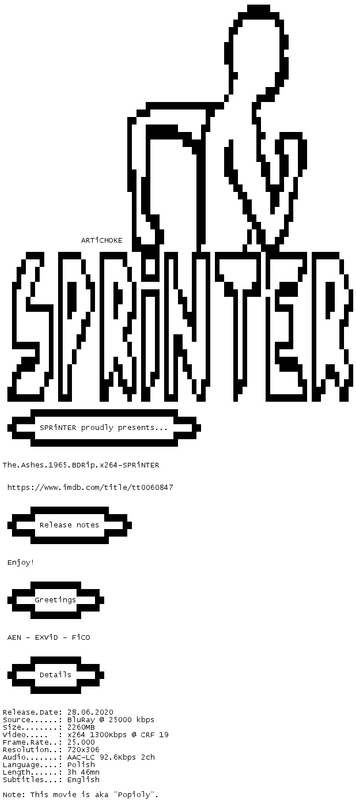 Release Name : The.Ashes.1965.BDRip.x264-SPRiNTER
