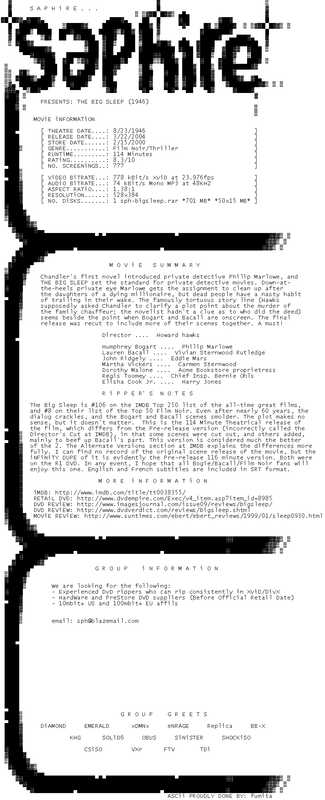 Release Name : The.Big.Sleep.1946.INTERNAL.DVDRip.XviD-SAPHiRE