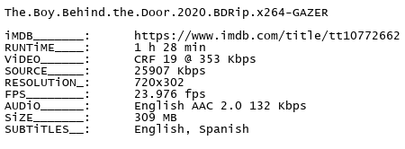- The Boy Behind the Door 2020 BDRip DD5.1 x264-playSD