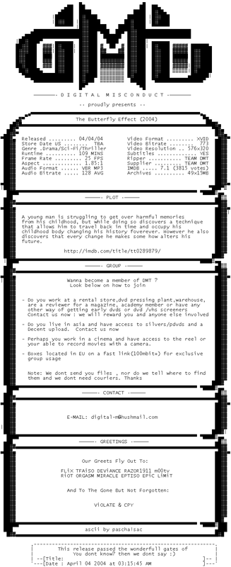 Release Name : The.Butterfly.Effect.2004.DVDRip.XviD-DMT
