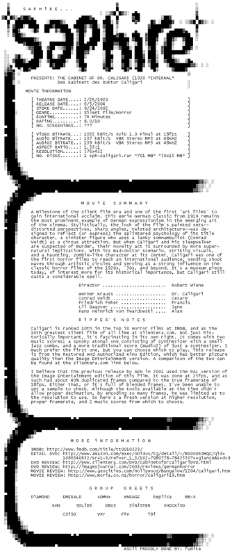 Release Name : The.Cabinet.Of.Dr.Caligari.1920.INTERNAL.DVDRip.XviD-SAPHiRE