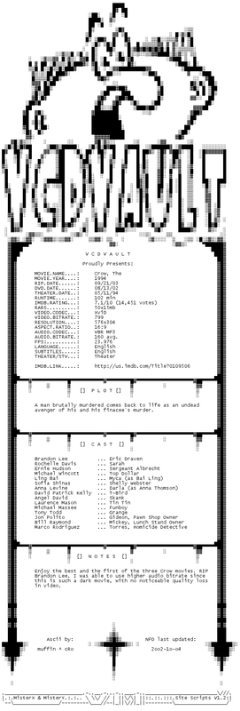 Release Name : The.Crow.1994.INTERNAL.DVDRip.XviD-VCDVaULT