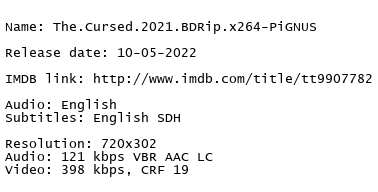 Release Name : The.Cursed.2021.BDRip.x264-PiGNUS