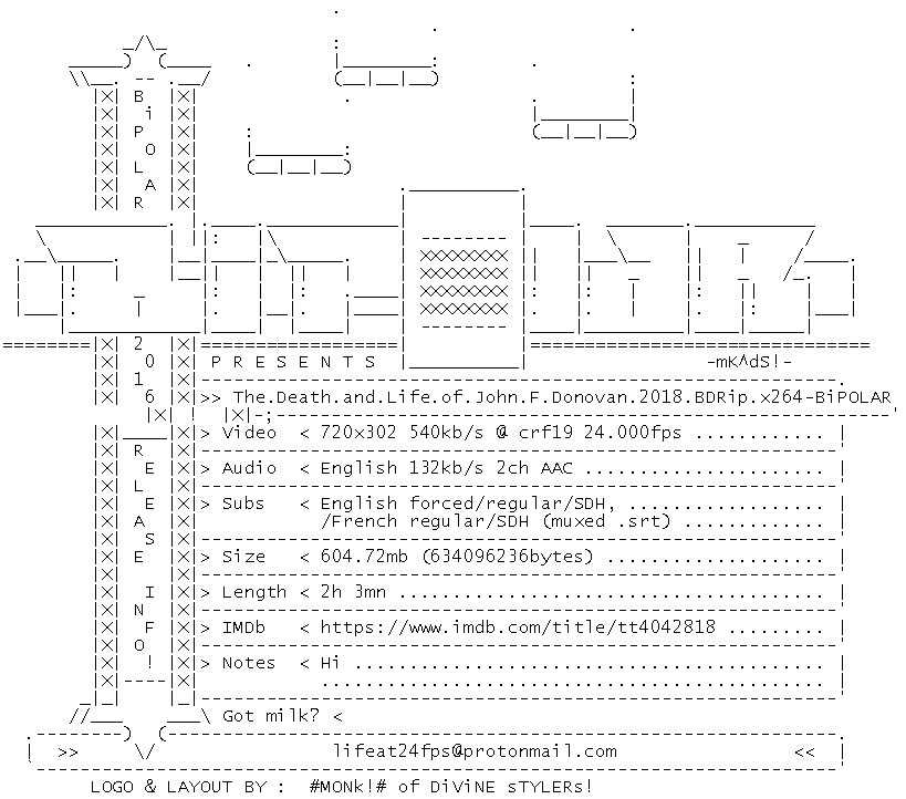 Release Name : The.Death.and.Life.of.John.F.Donovan.2018.BDRip.x264-BiPOLAR
