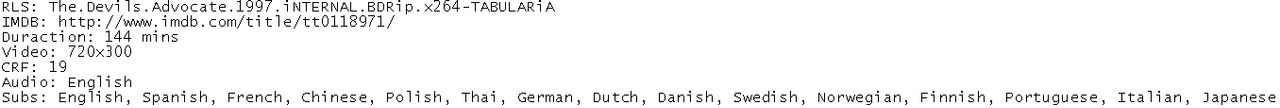 Release Name : The.Devils.Advocate.1997.iNTERNAL.BDRip.x264-TABULARiA