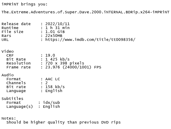 The Extreme Adventures of Super Dave 2000 iNTERNAL BDRip x264-iMPRiNT