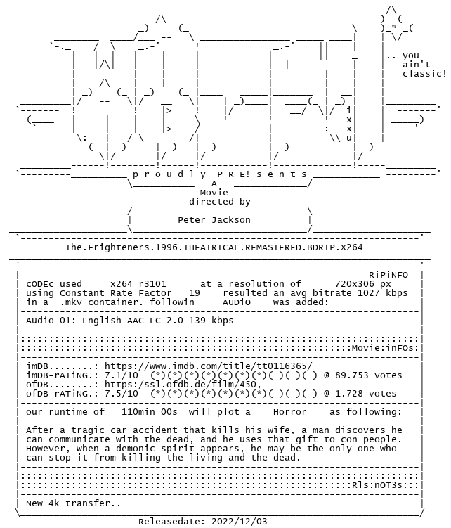 Release Name : The.Frighteners.1996.THEATRICAL.REMASTERED.BDRIP.X264-WATCHABLE