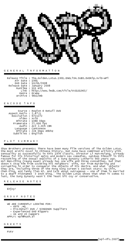 Release Name : The.Golden.Lotus.1991.ENGLiSH.SUBS.DVDRip.XviD-WPi