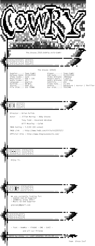 Release Name : The.Graves.2010.DVDRip.XviD-CoWRY
