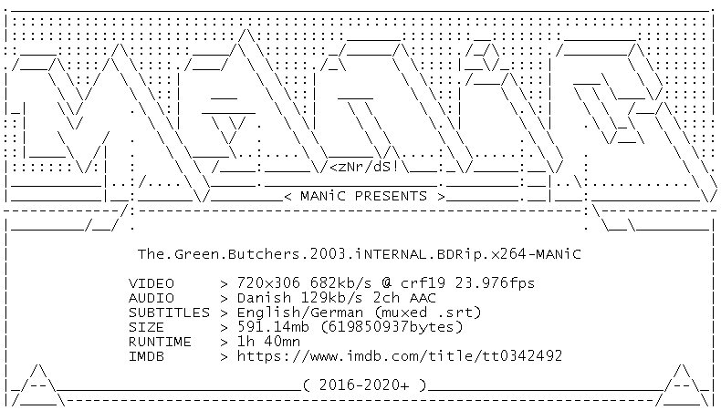 Release Name : The.Green.Butchers.2003.iNTERNAL.BDRip.x264-MANiC