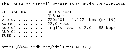 Release Name : The.House.On.Carroll.Street.1987.BDRip.x264-FREEMAN