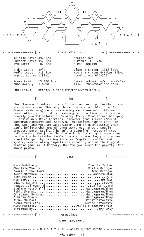 Release Name : The.Italian.Job.2003.DVDRiP.XViD-DEiTY