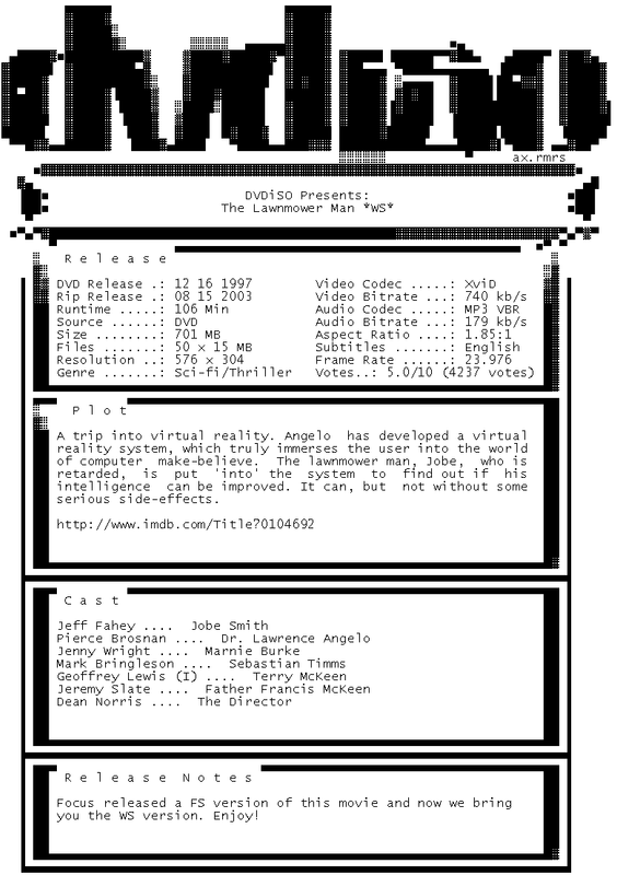 Release Name : The.Lawnmower.Man.1992.WS.DVDRip.XviD-DVDiSO