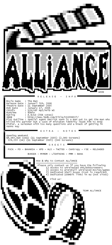 Release Name : The.Man.2005.DVDRip.XviD-ALLiANCE