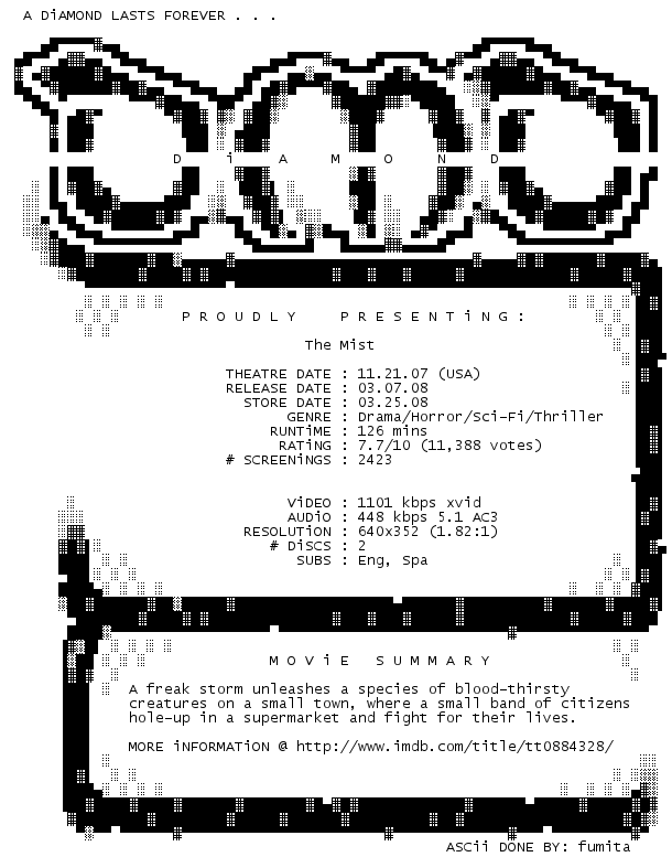 Release Name : The.Mist.2007.DVDRip.XviD-DiAMOND