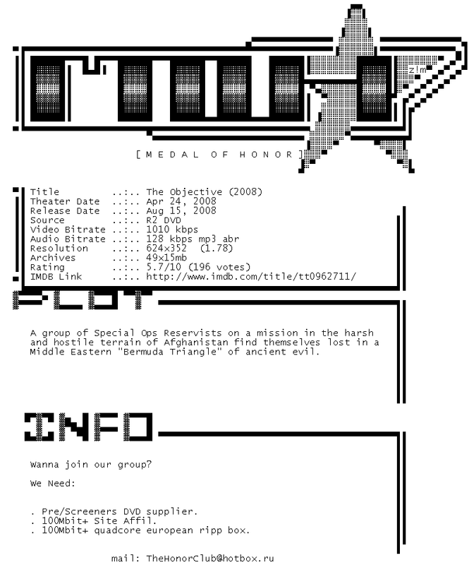Release Name : The.Objective.2008.DVDRip.XviD-MoH