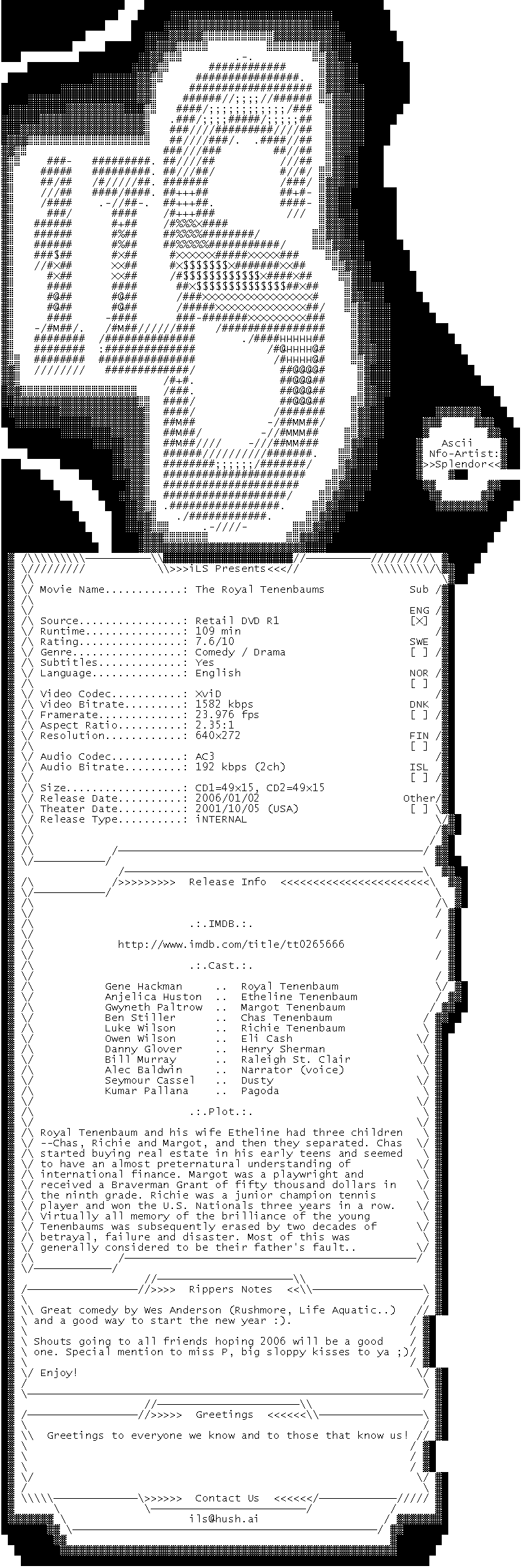 Release Name : The.Royal.Tenenbaums.2001.iNTERNAL.DVDRip.XviD-iLS