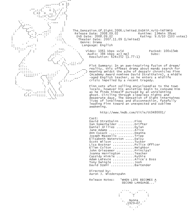 Release Name : The.Sensation.Of.Sight.2006.Limited.DVDRiP.XviD-iNTiMiD