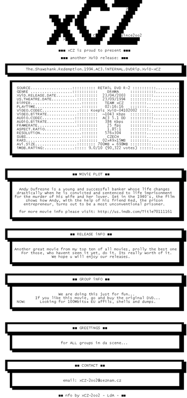 Release Name : The.Shawshank.Redemption.1994.AC3.iNTERNAL.DVDRip.XviD-xCZ