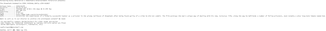 Release Name : The.Shawshank.Redemption.1994.iNTERNAL.BDRip.x264-REGRET