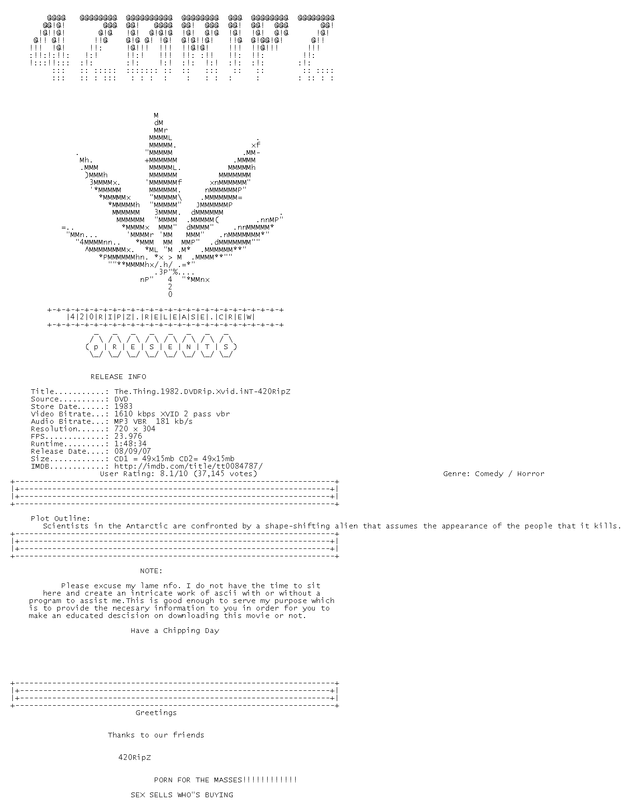Release Name : The.Thing.1982.DVDRip.Xvid.iNT-420RipZ