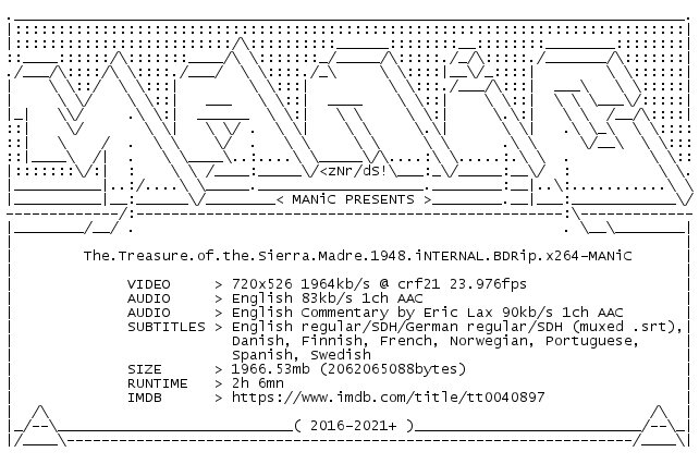 Release Name : The.Treasure.of.the.Sierra.Madre.1948.iNTERNAL.BDRip.x264-MANiC