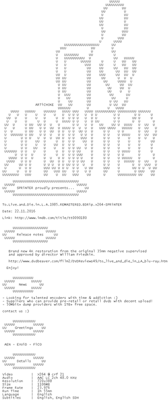 Release Name : To.Live.and.Die.in.L.A.1985.REMASTERED.BDRip.x264-SPRiNTER