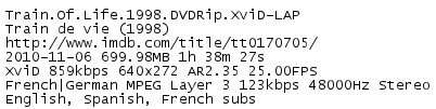 Release Name : Train.Of.Life.1998.DVDRip.XviD-LAP
