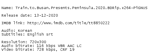Release Name : Train.to.Busan.Presents.Peninsula.2020.BDRip.x264-PiGNUS
