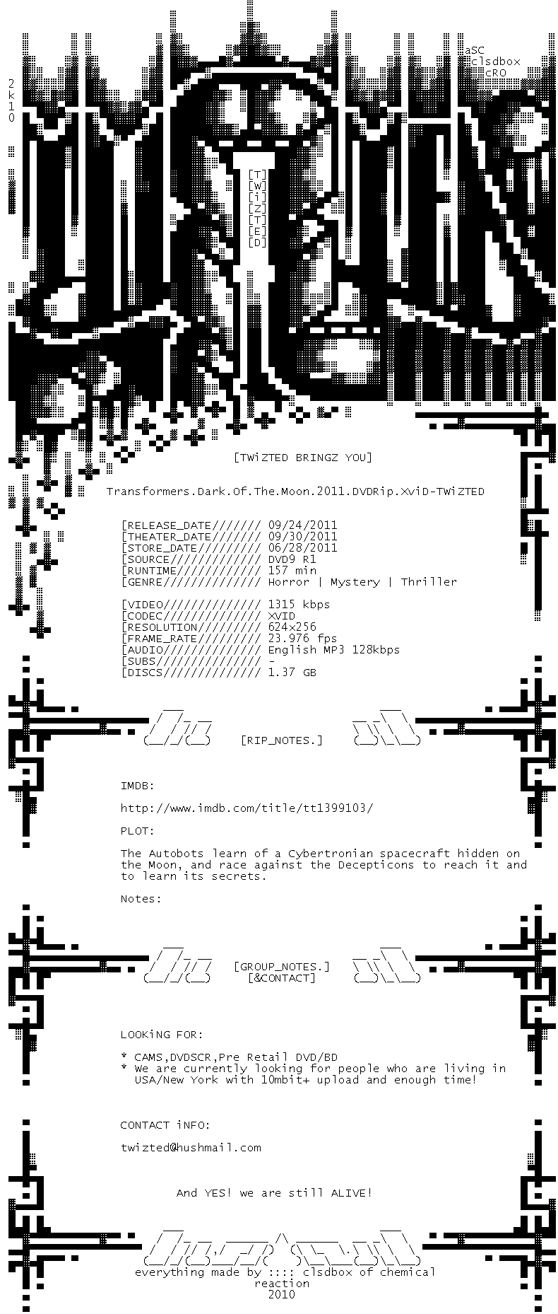 Release Name : Transformers.Dark.Of.The.Moon.2011.DVDRip.XviD-TWiZTED