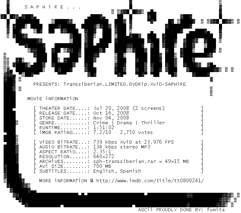 Release Name : Transsiberian.2008.LIMITED.DVDRip.XviD-SAPHiRE