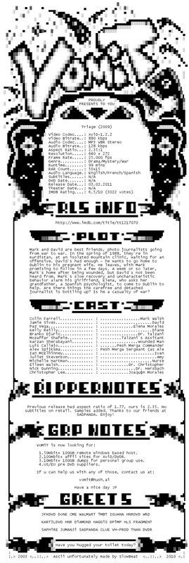Release Name : Triage.2009.WS.DVDRip.XviD-VoMiT
