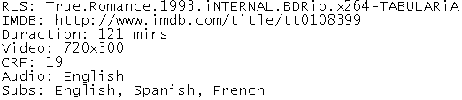 Release Name : True.Romance.1993.iNTERNAL.BDRip.x264-TABULARiA
