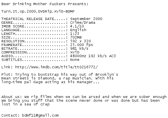 Release Name : Turn.It.Up.2000.DVDRip.XviD-BDMF