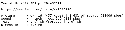 Release Name : Two.of.Us.2019.BDRip.x264-SCARE
