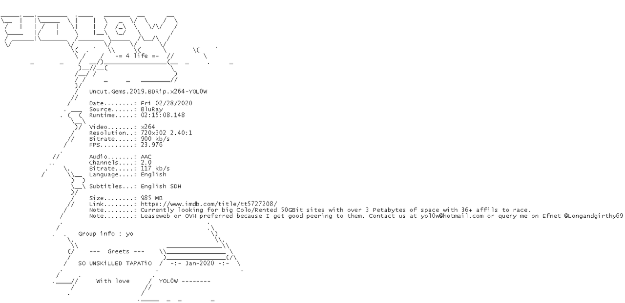 Release Name : Uncut.Gems.2019.BDRip.x264-YOL0W
