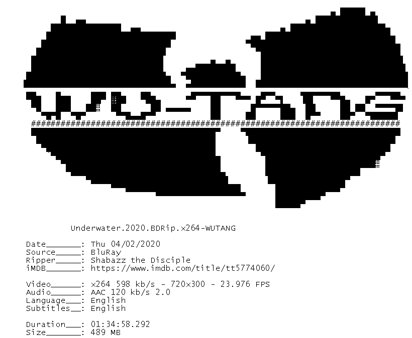 Release Name : Underwater.2020.BDRip.x264-WUTANG