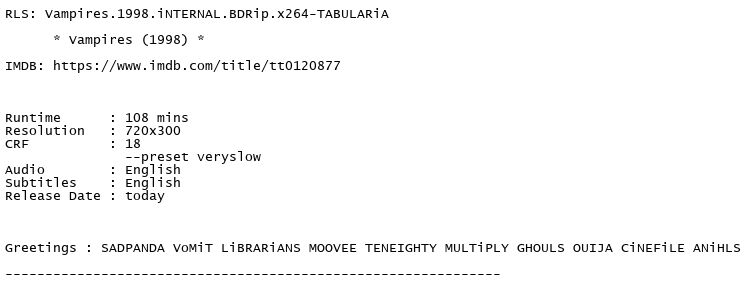 Release Name : Vampires.1998.iNTERNAL.BDRip.x264-TABULARiA