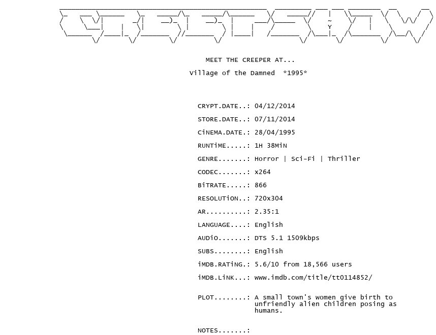 Release Name : Village.Of.The.Damned.1995.REMASTERED.BDRiP.x264-CREEPSHOW